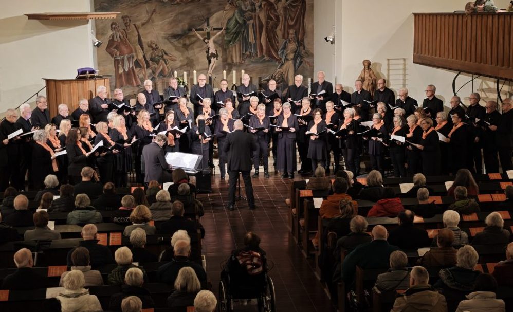 Ein Zeichen für den Frieden setzten die Glocken der Christuskirche in ihrem fünfminütigen Geläut zu Beginn, bevor Vorsitzende Gaby Häuser sich in ihrer Begrüßung über die dicht besetzten Reihen im großen Kirchenschiff der Christuskirche freute. Der Frauenchor stimmte eingangs Henry Purcells „Sound The Trumpet“ an. Das passte, wie auch das anschließende „Christmas Lullaby“ vom berühmten britischen Komponisten Sir John Rutter mit dem großen Jugendfreund-Chor der Frauen und Männer. Matthias Schmidt selbst komponierte das folgende „Weihnachtliche Abendlied“, das der Männerchor gemeinsam mit Sopranistin Nadja Ostrousho anstimmte. Am Klavier begleitete all dies Pianist Marcus Gemeinder, der auch als Instrumentalist beim „Miracles“ (Kenny G.) solistisch zu hören war.